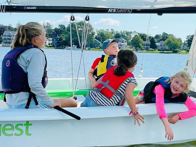 2025 was our fourth year with Minnows and it has been tremendously popular. The Minnows class is for students age 5 ½ – 7 ½ years old who have little to no prior sailing experience. The course is a one-week program, that runs 2.5 hours/day and is offered throughout the summer (see schedule). Students in the Minnows class will sail with the instructor in the boat and get a taste of the sport in a safe and supportive learning environment. The goal of our Minnows class is that our graduates are comfortable and ready to move up to the Beginners Class upon reaching 8 years old.